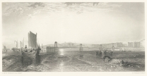 19世紀イギリスを代表する画家J.M.W.ターナーの版画作品集「ターナー・ギャラリー」中の1枚。油彩をはじめ、水彩や、挿絵版画等を手掛けた風景画の巨匠ターナーの死後に刊行された本書は、鋼版画に起こしたターナー作品を120点収録した、19世紀版画挿絵本の名品です。