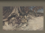 19世紀末イギリスの童話作家J.M.バリー(1860-1937)の代表作「ケンジントン公園のピーター・パン」の挿絵。イギリスを代表する挿絵画家のひとり、アーサー・ラッカム(1867-1939)がイラストをつけた本書は、広く知られているネバーランドのピーターパンの前日譚に当たる物語。ロンドンのケンジントン公園を舞台に、幼いピーターパンと妖精たちの様子が描かれています。