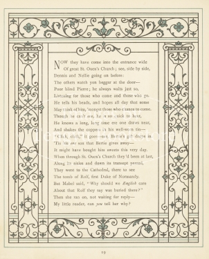19世紀末イギリスを代表する絵本画家ウォルター・クレイン(1845-1915)の兄で、書籍デザイナーでもあったトーマス・クレイン(1843–1903)の絵本「外国にて」の挿絵。