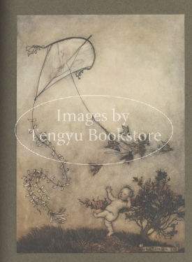19世紀末イギリスの童話作家J.M.バリー(1860-1937)の代表作「ケンジントン公園のピーター・パン」の挿絵。イギリスを代表する挿絵画家のひとり、アーサー・ラッカム(1867-1939)がイラストをつけた本書は、広く知られているネバーランドのピーターパンの前日譚に当たる物語。ロンドンのケンジントン公園を舞台に、幼いピーターパンと妖精たちの様子が描かれています。