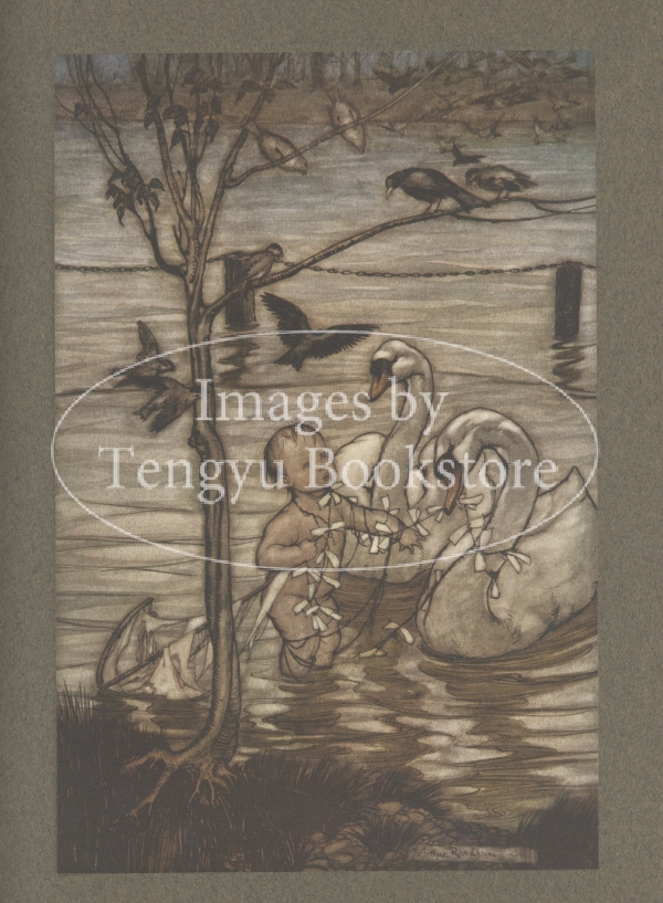 19世紀末イギリスの童話作家J.M.バリー(1860-1937)の代表作「ケンジントン公園のピーター・パン」の挿絵。イギリスを代表する挿絵画家のひとり、アーサー・ラッカム(1867-1939)がイラストをつけた本書は、広く知られているネバーランドのピーターパンの前日譚に当たる物語。ロンドンのケンジントン公園を舞台に、幼いピーターパンと妖精たちの様子が描かれています。