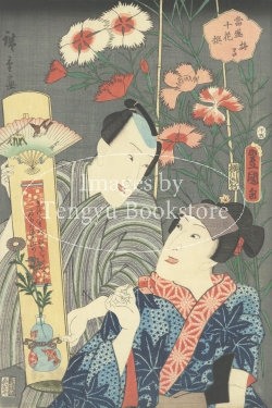 江戸時代後期を代表する浮世絵師のひとり 三代 豊国(歌川国貞:1786-1865)と、江戸時代後期の人気浮世絵師 歌川広重(1797-1858)による連作「当盛十花撰」からの一枚。