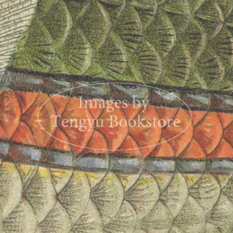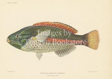 1907年ホノルルで刊行された「ハワイの魚類」の一図。ハワイに生息する色鮮やかな熱帯魚を、クロモリトグラフ(多色石版印刷)によって印刷した魚類小図鑑です。