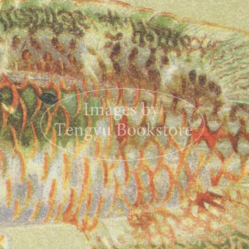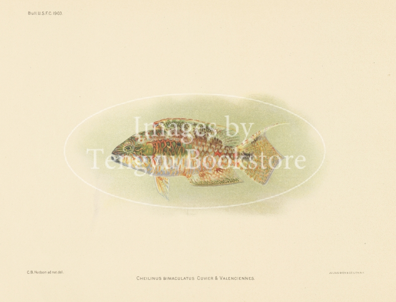 1907年ホノルルで刊行された「ハワイの魚類」の一図。ハワイに生息する色鮮やかな熱帯魚を、クロモリトグラフ(多色石版印刷)によって印刷した魚類小図鑑です。